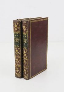 2 vol. petit in-12 (11,5 x 7 cm) maroquin bordeaux, dos lisse orné, p. de titre et tom. en mar. vert, triple filet doré encadrant les plats, filet sur les coupes, roulette sur les chasses, tr. dorées (reliure de l'époque).