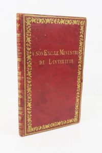 Maroquin rouge, dos lisse orné, titre doré, filets et guirlande florale dorés encadrant les plats, superlibris doré "A son Exc. le Ministre de l'Interieur", filet pointillé doré sur les coupes, roulette dorée sur les chasses, tr. dorées (reliure de l'époque).