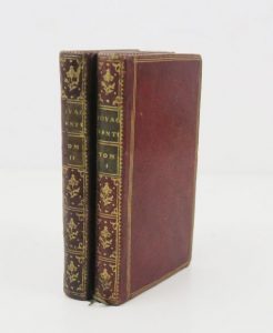2 vol. in-18 maroquin rouge, dos lisse orné, p. de titre et tomaison en mar. vert, triple filet doré encadrant les plats, filet sur les coupes, roulette sur les chasses, tr. dorées (reliure de l'époque).