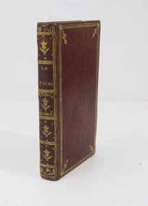 In-18 maroquin rouge, dos lisse orné, titre doré, triple filet doré encadrant les plats avec fleurons dorés en écoinçons, filet sur les coupes, tr. dorées (reliure de l'époque).