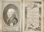 Almanach en allemand avec plaque de mica format in-16, illustré de 6 portraits, 1 titre gravé, 12 gravures, 1 carte rehaussée en couleurs et 4 gravures en couleurs.