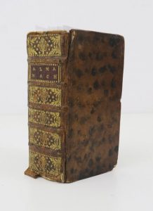 8 almanachs reliés en un fort vol. in-24 (10,5 x 5,5 cm) veau marbré, dos à nerfs orné, tr. marbrées (reliure de l'époque).