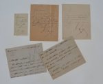 Enrichi de 3 L.A.S. de Arsène HOUSSAYE (slnd, demande une place d'orchestre dans l'une, félicite un écrivain dans l'autre et recommande un écrivain "qui a beaucoup de talent perdu" dans la dernière) et de 2 L.A.S. de Camille DOUCET (poète et directeur de l'Administration des théâtres) sur papier à entête du département Théâtres du Ministère d'État (28 octobre 1857 et 12 avril 1858, informe son "cher Maître" qu'il compte se présenter au conseil général pour le canton de Joigny).