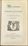 - DELAVIGNE (C.), Messéniennes et poésies diverses. Paris, Ladvocat, 1824. In-8 veau blond, dos à nerfs orné, titre doré, joli décor à froid sur les plats, tr. dorées (reliure de l'époque). Vignette de titre et culs-de-lampe.