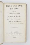 HORACE. Traduction des Odes et de l'Art poétique d'Horace en vers français. Par M. de *** [BALLAINVILLIERS]. Paris, Migneret, 1812.