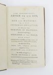- CHESTERFIELD (Philip Dormer Stanhope, comte de), Lord Chesterfield's Advice to his son, on men and manners ; or, A new system of education [.] London, Osborne and Griffin, Mozley, 1787. In-18 veau raciné, dos lisse orné, p. de titre en mar. rouge (reliure de l'époque). Relié à la suite du même auteur, même éditeur, même date : Excellencies united, containing the principles of politeness [.] Qqs frottés.