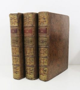 3 vol. in-4 veau marbré, dos à nerfs orné, p. de titre et de tom. en mar. rouge et brun, triple filet à froid encadrant les plats, double filet doré sur les coupes, tr. dorées (reliure de l'époque).