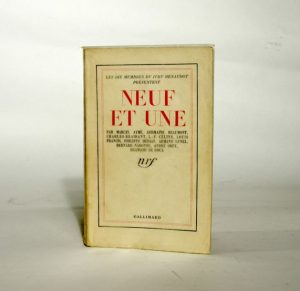 Édition originale de la seule nouvelle (un scénario en réalité) signée de Céline, publiée dans ce recueil collectif "Neuf et une" résultant d'une commande faite en 1935 aux 10 lauréats du prix Renaudot par les Éditions Gallimard, au côté de Marcel Aymé, Germaine Beaumont, Charles Braibant, Louis Francis, Philippe Hériat, Armand Lunel, Bernard Nabonne, André Obey et François de Roux.
