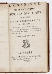 TISSOT (Samuel Auguste). L'onanisme. Dissertation sur les maladies produites par la masturbation. Nouvelle édition. Paris, Duprat-Duverger, 1810.