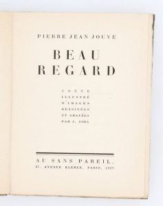 JOUVE (Pierre Jean) JOUVE (Pierre Jean). Beau regard. Conte illustré d'images dessinées et gravées par J. SIMA. …