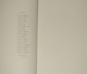 2 pp. portant le texte imprimé en français, séparées d'un triptyque portant la traduction calligraphiée en persan en relief et une composition en relief centrale de Marc Pessin.