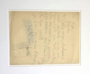 KIKI de Montparnasse (Alice Prin dite). L.A.S. ""Kiki"", 1 p. (22 x 17 cm), slnd, au crayon, adressée à Man Ray et Natacha, avec un dessin sous la signature :