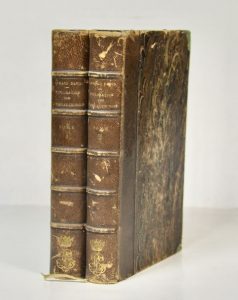 2 vol. in-12 demi-maroquin brun, dos à nerfs, titre et tomaison dorés, chiffre couronné en queue (reliure de l'époque). 2 (sur 3) cartes. Dos frottés. Qqs rousseurs.
