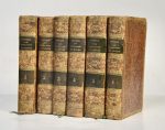6 vol. petit in-12 veau marbré, dos lisses ornés, p. de titre et de tom. en mar. brun, roulette dorée encadrant les plats (reliure de l'époque). 36 (8+6+6+3+9+4) cartes dépliantes hors texte. Qqs rousseurs.