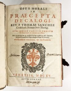 SANCHEZ (Thoma). Opus morale in praecepta decalogi. Venetiis, apud Juntas, 1615.