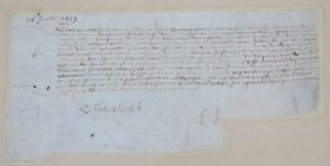 CHARLES VII. Pièce manuscrite signée "Charles", 28 janvier 1439, 1 p. oblongue, sur parchemin. Intéressant et rare document rédigé vers la fin de la guerre de Cent ans par le roi Charles VII (1403-1461), donnant pleins pouvoirs au chevalier (knight) Walter Trumpington (ou Trumpyngton), et le nommant son lieutenant au sein du Palais de la ville de Rouen alors aux mains des Anglais depuis 1419 (conquise suite à un siège qui fera plus de 35000 morts). Au moment de sa conquête, Rouen, capitale de la Normandie, était la deuxième ville du royaume après Paris (avec 60 000 habitants) et deviendra alors le siège des Anglais dans l'hexagone. Jeanne d'Arc, après avoir été capturée et vendué aux Anglais, y est jugée puis brûlée vive en 1431. La politique fiscale du Duc de Bedford, régent du royaume de France pendant la minorité du roi d'Angleterre Henri VI (de 1422 à 1435), provoquent un climat insurrectionnel dans toute la région qui jouera en faveur du roi de France Charles VII lors de sa reconquête qui aboutira à la fin de l’occupation anglaise de la Normandie en 1450 après la bataille de Formigny remportée par le connétable Arthur de Richemont. Walter Trumpington retournera en Angleterre avant la fin de la guerre ; on le retrouve Shérif de Cambridgeshire et Huntingdonshire en 1458.