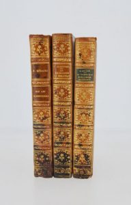Lot. Ensemble de 3 volumes uniformément reliés en demi-basane brune à coins, dos à nerfs ornés, têtes dorées, couvertures conservées.