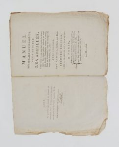 LOMBARD (Charles Pierre). Manuel nécessaire au villageois pour soigner les abeilles, les dépouiller dans un instant sans leur nuire, les transvaser, enlever au Miel son âcreté, l'employer comme le Sucre, faire les Hydromels, etc., etc., etc. Avec figures. Paris, Chez l'auteur, Migneret, Renouard, An XI - 1803.