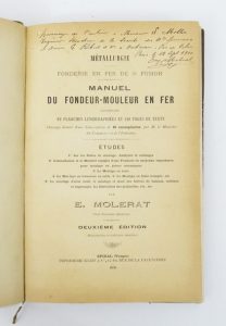 MOLERAT (Eugène). Manuel du fondeur-mouleur en fer. Deuxième édition. Epinal, Klein & Cie, 1896.