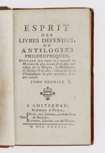 [FONTENAY (Abbé de)]. Esprit des livres défendus, ou Antilogies philosophiques. […] Amsterdam et Paris, Nyon et Laporte, 1777.
