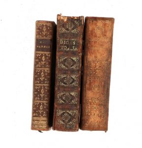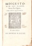 - Digestorum seu pandectarum pars quinta… Paris, sn, 1567. In-8 veau brun, dos à nerfs orné (reliure de l'époque). Coiffes, mors et coins usés, mouillures brunes marginales.