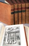 dos à 5 nerfs, pièces de titre et de tomaison maroquin rouge, brun et vert, caissons ornés, triple filet doré bordant les plats, tranches rouges (défauts aux rel. dont des coiffes et coins usés, griffures aux plats, certains mors fendus ; trav. de vers au plat inf. et en marge du t.5, et en marge du t.8 ; rouss. et bruniss. modérées).