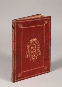 - Giacomo Rospigliosi (1629-1684), ou bien son frère Felice Rospigliosi (1639-1688), tous deux Cardinaux italiens et neveux du Pape Clément IX, auquel est adressé ce panégyrique (armes aux plats ; cote manuscrite en italien sur une garde).