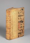 [14] f., 546 p., [sign. (:) 8, ):( 6, A-Z 8, Aa-Ll 8,mm 2 , le dernier bl.)], reliure époque demi-peau de truie, dos à 4 nerfs, traces de titre manuscrit, plats couverts d'un parchemin de réemploi (fragment d'antiphonaire manuscrit), la peau de truie couvrant la moitié des plats est ornée d'un jeu de roulettes à froid avec portrait en médaillons (un coin usé, garde sup. absente, qq. traces de poussière en fin de vol., un coin rempl. en marge f. Gg2).