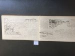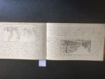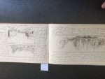 BELGIQUE – PAYS BAS : Marie ANNALY-LOURSE : Voyage en Belgique et Hollande. Vers 1885. Un volume in-8 oblong (17,5 x 27 cm) relié en toile marron d’époque. 93 pages + qq pages restées vierges. Important et unique manuscrit retraçant le voyage effectué par l’artiste bordelaise Marie Annaly, ou Annaly-Lourse, en Belgique et en Hollande dans les années 1885, en compagnie d’un couple d’amis. Ces récits de voyage, contenant de nombreuses observations ainsi que des anecdotes amusantes, nous emmène de Paris (point de départ) à Bruxelles, Anvers et sa région, la route d’Anvers à Amsterdam, Amsterdam et sa région, La Haye et se termine à Schweningen. L’ensemble est illustré de 106 très beaux dessins réalisés par l’artiste soit à la plume soit au crayon, dans le texte ou à pleine page, représentant paysages, monuments et personnages pittoresques rencontrés lors de leurs excursions. Marie Annaly (1846-1910), dite Annaly-Lourse, est une artiste peintre bordelaise qui fut un des premiers membres de la Société des Femmes artistes. Elle fut l’élève de Auguin, Baudit et Pelouse.