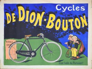 Cyclisme / De Dion-Bouton / Ogé / Puteaux. Affiche originale non entoilée. "Cycle De Dion-Bouton....C'est l'vélo du Parisien..." dit à son fils, la maman bretonne, autant dire, ce qui se fait de mieux. Et Puteaux est à 521 km...Par Eugène Ogé (1861-1936) de l'Académie Julian. Vers 1910. Lithographie. 120X160. La qualité des couleurs préservées, nous émerveille autant que l'affiche. B+
