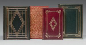 BALZAC (Honoré de). La Peau de chagrin. Études sociales. Paris, H. Delloye & Victor Lecou, Éditeurs, 1838. In-8°, maroquin bordeaux à grain long, large décor doré ornant les plats, dos à nerfs orné, tranches dorées, étui (René Aussourd) 100 vignettes dans le texte par BARON, JANET-LANGE, GAVARNI, gravées sur acier par BRUNELIÈRE, NARGEOT, LANGLOIS, etc.