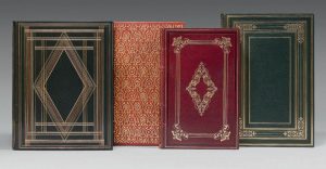 JANIN (Jules). La Normandie. Paris, Ernest Bourdin, 1844. In-4° (200 x 290 mm), maroquin vert à grain long, large encadrement de filets dorés et à froid ornant les plats, large fleuron aux angles, dos à nerfs orné, doublure et gardes de moire chocolat, non rogné, couverture ornée en couleurs conservée (Mercier sr de Cuzin).