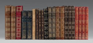 2 volumes grand in-8°, demi-maroquin brun à grain long et à coins, filet doré bordant les plats, dos à nerfs orné d'un décor doré, couvertures illustrées conservées (Noulhac).