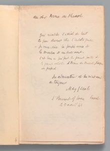 EXEMPLAIRE UNIQUE, PORTANT UN LONG ENVOI DE MAX JACOB à PIERRE DE MASSOT en page de garde (daté du 5 avril 1943) et, collé sur le faux-titre, UN PORTRAIT À LA PLUME de «GUILLAUME APOLLINAIRE EN SOLDAT», signé «MAX JACOB 43» et accompagné de cette mention : «À Pierre de Massot pour coller en ce livre».
