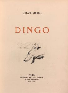 MIRBEAU (Octave). Dingo. Paris, Ambroise Vollard, Éditeur, 1924. Petit in-folio, vélin ivoire, dos lisse, couverture illustrée conservée (Garric-Bouville).