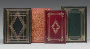 In-4°, maroquin rouge, plats entièrement ornés d'un décor de fleurons dorés entrelacés, dos lisse orné, tête dorée, couverture illustrée en couleurs conservée, étui (René Kieffer).