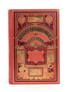 Grand in-8° double. Cartonnage éditeur en pleine percaline rouge «aux deux éléphants» avec un second plat de type Lenègre «e». Lenègre Relieur. Tranches dorées. Gardes bleu. Imprimerie Gauthier-Villars. Catalogue «AP» pour 1881-1882.