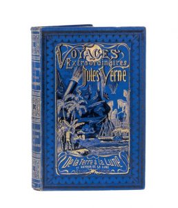 [Espaces célestes] De la Terre à la Lune / Autour de la Lune par Jules Verne. Illustrations par de Montaut (De la Terre à la Lune) et Émile Bayard et A. de Neuville (Autour de la Lune). Paris, Bibliothèque d'Éducation et de Récréation, J. Hetzel et Cie, sd (1872).