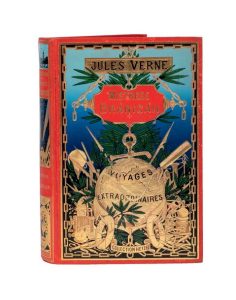 Grand in-8° double. Cartonnage éditeur en pleine percaline polychrome «au globe doré» du 3e type. Engel relieur. Tranches dorées. Gardes bleu. Douze planches hors-texte en couleurs + deux cartes. Imprimerie Gauthier-Villars.