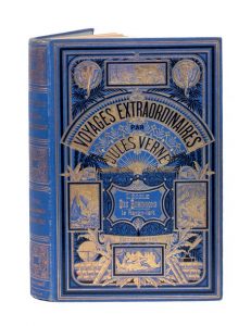 Grand in-8° double. Cartonnage éditeur en pleine percaline bleu cobalt «aux deux éléphants» du 2e type Lenègre. Tranches dorées. Gardes bleu. Imprimerie Gauthier-Villars. Catalogue «BC» pour 1882-1883.