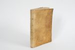 Reliure établie à la fin du XIXème siècle, plein vélin ivoire, dos lisse et couture apparente ; le relieur a conservé ce qui semble être les plats de la reliure d’origine.