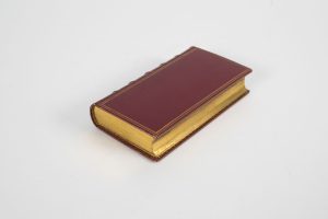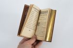 XIXème en plein maroquin rouge, triple filet doré en encadrement sur les plats, dos à nerfs richement orné de filets et fleurons dorés, titre et date dorés, toutes tranches dorées sur marbrure, dentelles dorées sur les contreplats (Capé).