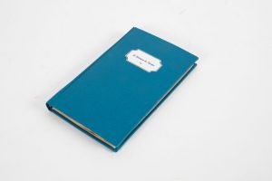 toile bleue, titre en papier sur le premier plat, exemplaire relié à toutes marges non rognées.