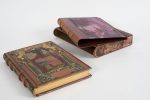 Premier plat avec mosaïque représentant un très beau décor de paysage avec fontaine, feuillages et saints en encadrement ; feuillages et saints sont repris au second plat. Dos à nerfs mosaïqués dans le même esprit, auteur et titre dorés. Coiffe guillochée et filets dorés sur les coupes.