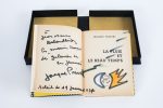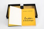 PRÉVERT Jacques — La pluie et le beau temps - Éd. NRF Le point du jour 1955, E.O.ex. du tirage courant, comportant un dessin et envoi autographe très joyeux, signé de l’auteur (1957), format in-8 (19 x 14,5 cm).