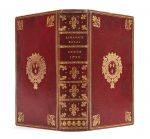 centre, dos lisse orné de motifs dorés, tranches dorées, doublures et gardes de tabis bleu (reliure de l’époque). 661 p. Le calendrier est interfolié de ff. de papier légèrement bleuté, restés vierges. Bel exemplaire, en grand papier, relié aux armes du comte d’Artois. Provenance : Comte d’Artois (armes). Bibliographie : OHR, pl. 2550, fer non répertorié. Coins, coiffes et mors un peu frottés, quelques petites restaurations. Légères rousseurs.