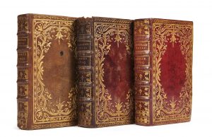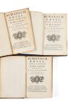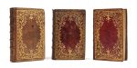 caissons dorés avec fleurs de lis dorées répétées, tranches dorées, dentelle intérieure dorée (reliure de l’époque). [16] ff., p. [33]-714, [1] f. Almanach royal pour 1789. Belle reliure à la plaque attribuée à Dubuisson. JOINT - Almanach royal, année commune M.DCC.LXXXX. Paris, veuve D’Houry et Debure, [1790]. In-8 (19,9 x 10,9 cm), maroquin vieux-rouge, plaque attribuée à Dubuisson à décor de rinceaux, roulette dorée encadrant les plats, dos à nerfs orné de caissons dorés avec fleurs de lis dorées répétées, tranches dorées, dentelle intérieure dorée (reliure de l’époque). [16] ff., p. [33]-144, 133 bis-144 bis, p. 145-694, 1 f. bl. L’exemplaire est complet du cahier Ibis de 6 ff. inséré entre les p. 144 et 145. Reliure à la plaque attribuée à Dubuisson. - Almanach royal, année commune M.DCC.LXXXX. Paris, veuve D’Houry et Debure, [1790]. In-8 (19,9 x 11,4 cm), maroquin vieux-rouge, plaque attribuée à Dubuisson à décor de rinceaux dorés, roulette dorée encadrant les plats, dos à nerfs orné de caissons dorés avec fleurs de lis dorées répétées, tranches dorées, dentelle intérieure dorée (reliure de l’époque). [16] ff., p. [33]-144, 133 bis-144 bis, p. 145-694, 1 f. bl. L’exemplaire est complet du cahier Ibis de 6 ff. inséré entre les p. 144 et 145. Belle reliure à la plaque attribuée à Dubuisson. Provenance : 2. Gabriel Mareschal de Bièvre (ex-libris armorié). Bibliographie : 1-3. Galantaris, Manuel, II, p. 284, pl. 10. 1. Reliure défraîchie, coins très lacunaires, des frottements sur les coiffes avec manque de cuir en pied du dos, une tache au premier plat, déchirure de papier sur les gardes en tête de volume. 2. Larges mouillures sur les plats, quelques mouillures en gouttière aux premiers et derniers ff., dos bruni et frotté, avec coiffe supérieure arasée, coins frottés, petits frottements sur les plats, petite déchirure en tête des p 105-106, rousseurs éparses. La p. 129 est mal chiffrée 126. 3. Dos légèrement passé avec griffure en tête, manque de dorure sur les plats, premiers feuillets effrangés, mouillures sur les gardes (une garde partiellement décollée), quelques rousseurs éparses, la p. 129 est m. chiffrée 126.