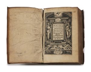 édition originale de cet ouvrage de Jean Aubery, médecin du duc de Montpensier, concernant les célèbres eaux thermales de Bourbon Lancy. ILLUSTREE D’UN TITRE-FRONTISPICE GRAVE EN TAILLE-DOUCE. « Cette étude, écrite par un médecin résidant à Bourbon depuis douze ans, est aussi complète qu’elle pouvait l’être en 1604, témoignant de l’état des connaissances hydrologiques du temps. Elle renferme des observations remarquables par une sagacité encore rare à l’époque où elle a été écrite. Cet ouvrage a surtout conservé une certaine valeur par les renseignements archéologiques que l’auteur avait recueillis sur les antiquités des bains de Bourbon » (Claude Lamboley). Bibliographie : Krivatsy, Durling, A Catalogue of Seventeenth Century Printed Books in the National Library of Medicine, n° 458. Claude Lamboley, « Jean Aubery », 2009 (online). Parchemin sali, légers manques au recouvrement du second plat, mouillures en tête de certains feuillets, déchirure sans manque à la p. 76.