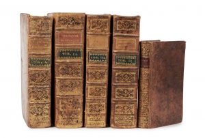 l’époque). JOINT LE GRAND D’AUSSY. Voyage d’Auvergne. Paris, Eugène Onfroy, 1788. In-12 (19,1 x 12 cm), veau marbré, dos lisse orné de motifs dorés, pièce de titre rouge (reliure de l’époque). Édition originale. VUE DE CLERMONT ET DES VOLCANS GRAVEE SUR CUIVRE REPLIEE. 1. Reliures frottées, quelques galeries de vers sur les plats. Quelques rousseurs. 2. Reliure un peu usagée : mors et dos frottés, coins émoussés, éclat à la coiffe de tête. Déchirure réparée à la vue, quelques légères rousseurs.