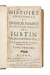 [JUSTIN].– [LA MARTINIÈRE (Louis Ferrier de)] Histoire universelle de Trogue Pompée réduite en abbrégé par Justin. Lyon, Horace Molin, 1697. 2 vol. in-12 (15,4 x 8,8 cm), maroquin citron, triple filet doré en encadrement des plats, armes...